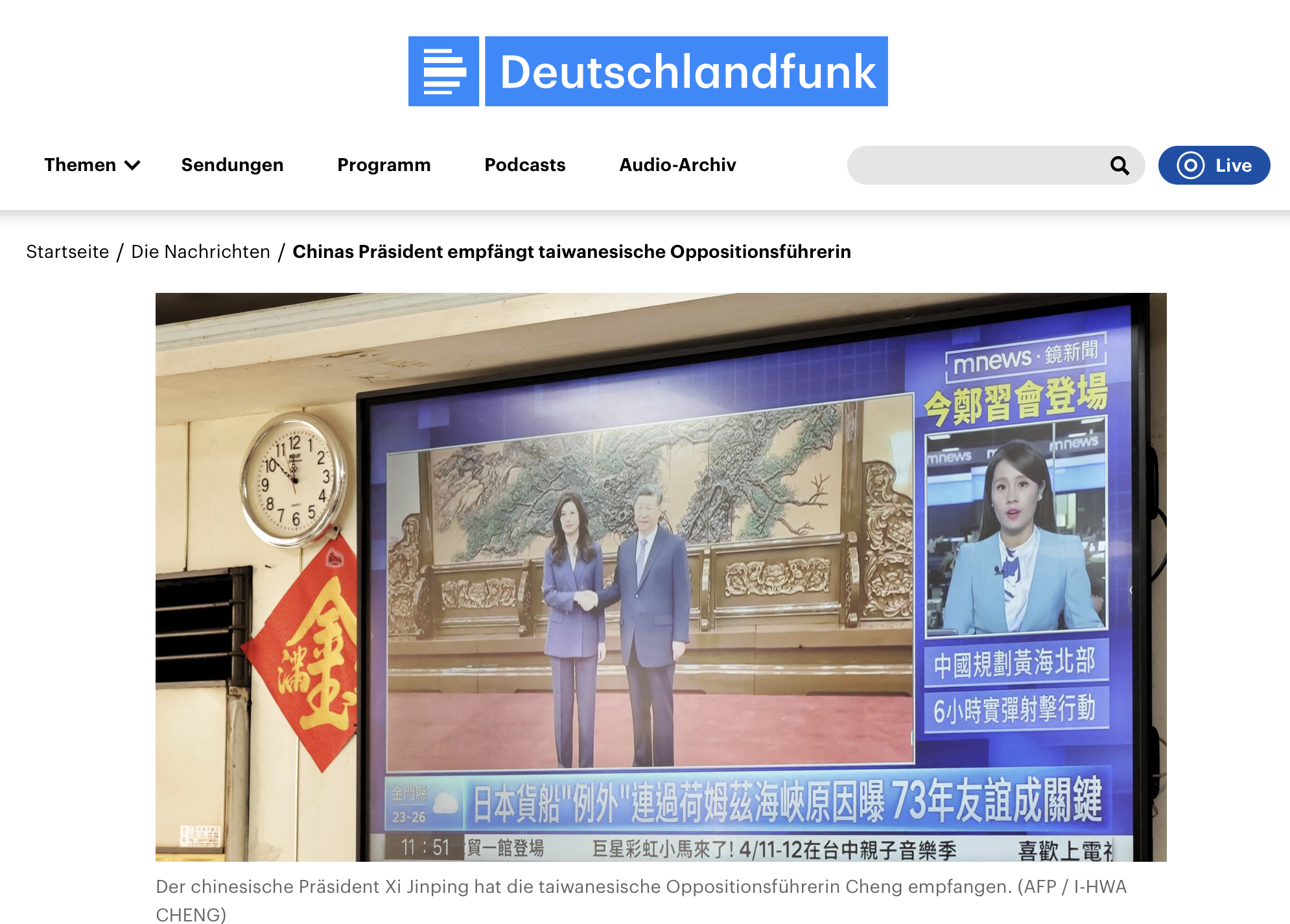 Weiterlesen: https://www.deutschlandfunk.de/chinas-praesident-empfaengt-taiwanesische-oppositionsfuehrerin-102.html